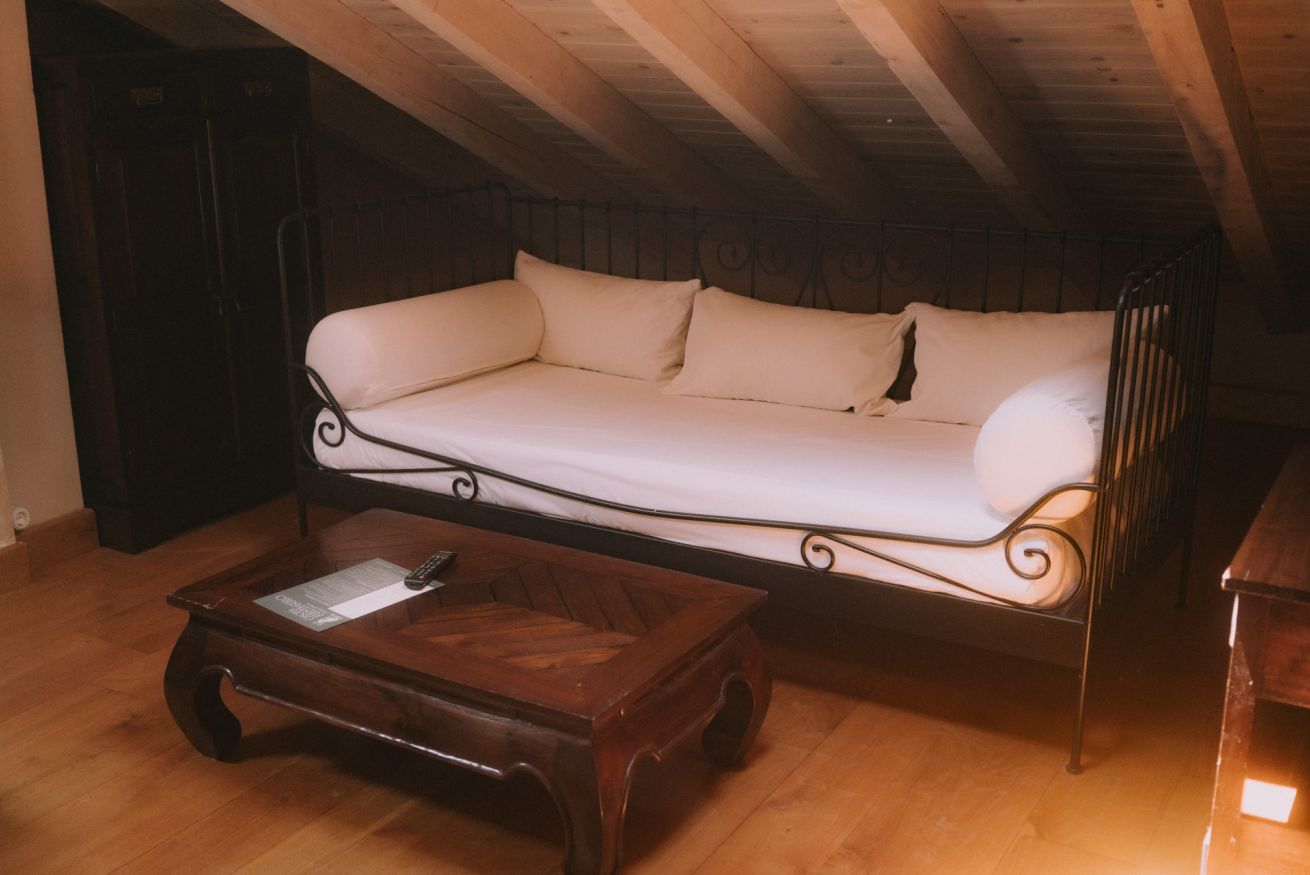 Planta ático de nuestra casona, espacio con habitacion, y baño con bañera de hidromasaje redonda en esquina.